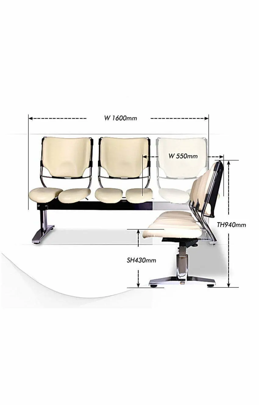 Die Sitzflächen des Dreisitzers sind geteilt und ermöglichen das dynamische Sitzen im Wartezimmer. Im Gegensatz zu Wartestühlen mit einer starren Sitzplatte vermeiden die beweglichen Sitzmodule von HARA STUHL jeglichen Druck. Die Wirbelsäule und das Steißbein werden entlastet, die Bandscheiben geschont und die Durchblutung im Becken gefördert.